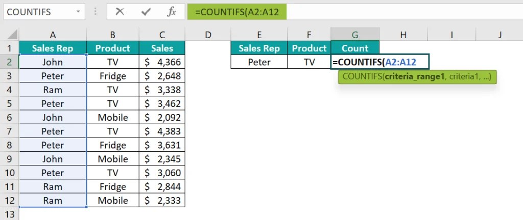 Basic COUNTIFS Syntax