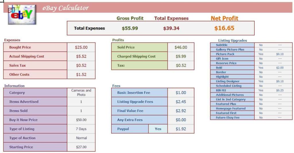 - Selling Price: The price you are selling the product for on eBay.