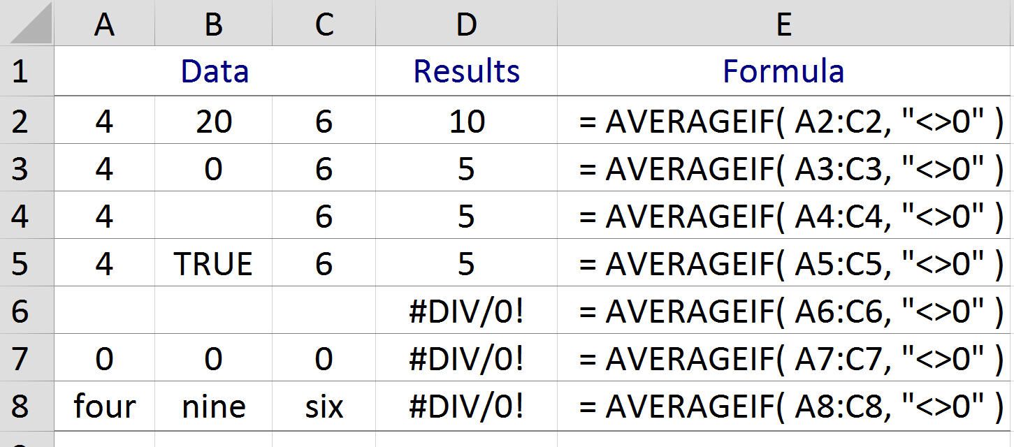 - The `AVERAGE` function then calculates the average of all the values returned by the `IF` function, effectively ignoring the `FALSE` values (which represent the original zeros).