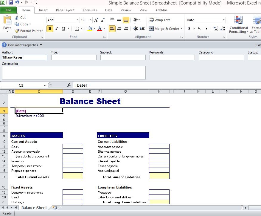 - File Name: Give your template a descriptive name (e.g., “Small Business Balance Sheet Template”).