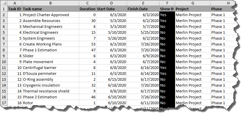 - Select the “Task Name”, “Start Position”, and “Duration (Days)” columns (including headers). Hold down the Ctrl key (or Cmd key on a Mac) to select non-adjacent columns.