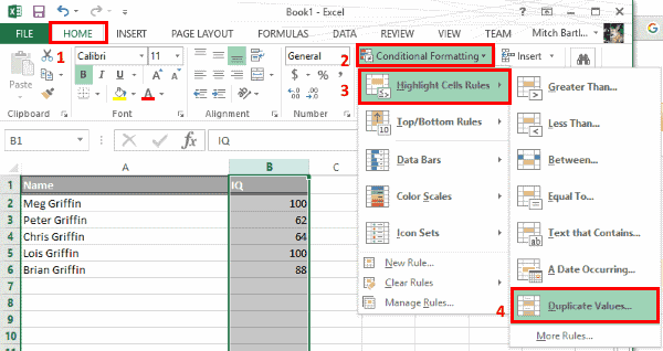 The simplest way to highlight duplicates is by using Excel’s conditional formatting feature. This allows you to apply formatting (like highlighting) to cells that meet specific criteria. Here’s how: