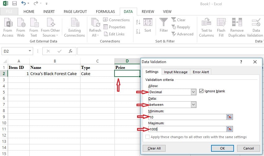 - Click “OK”: Click the “OK” button to apply the data validation rule.