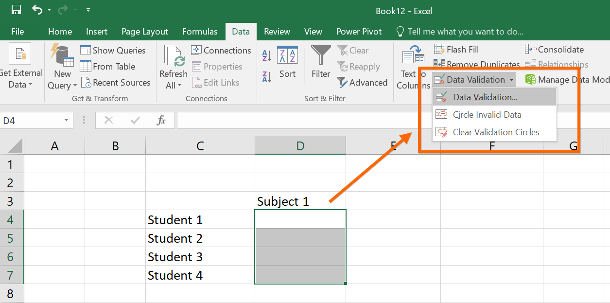 - Open the Data Validation Dialog: Go to the “Data” tab on the Excel ribbon and click on “Data Validation.” This will open the Data Validation dialog box.