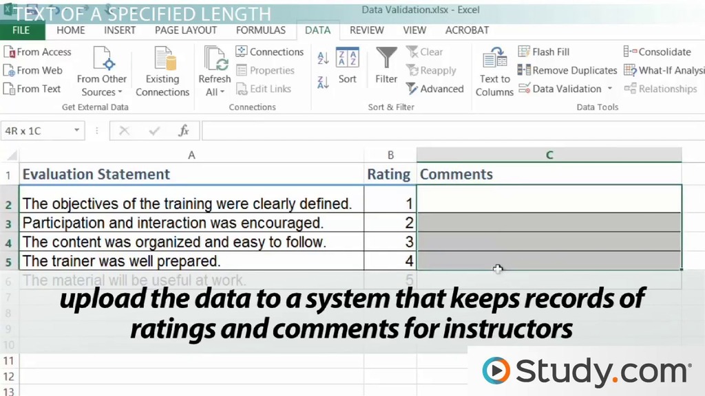 ) or relative references in your formulas. Absolute references prevent the cell references from changing when the data validation rule is applied to multiple cells. Relative references change appropriately as the validation is applied to more than one cell. - Testing: Thoroughly test your data validation rules with different scenarios and edge cases to ensure they work as expected.