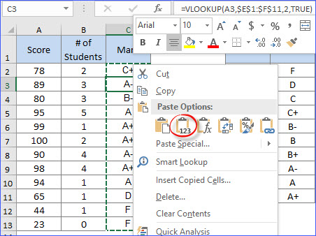 Let’s say you have a table that assigns letter grades based on numerical scores: